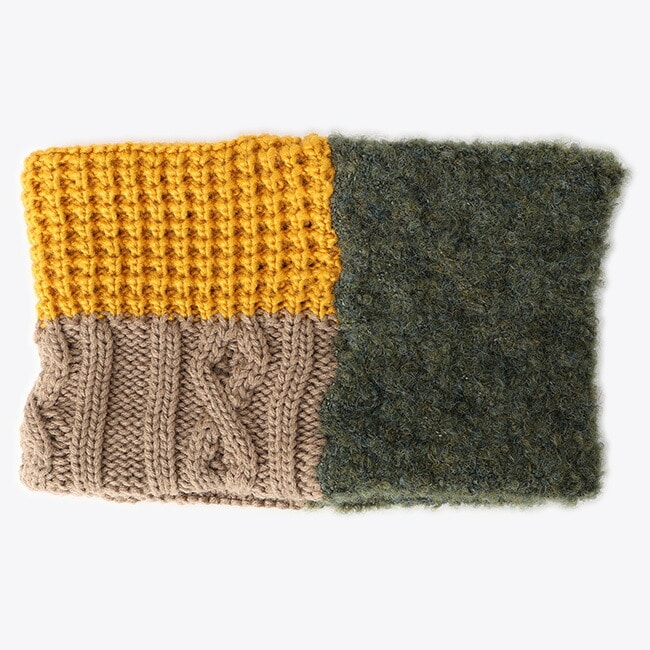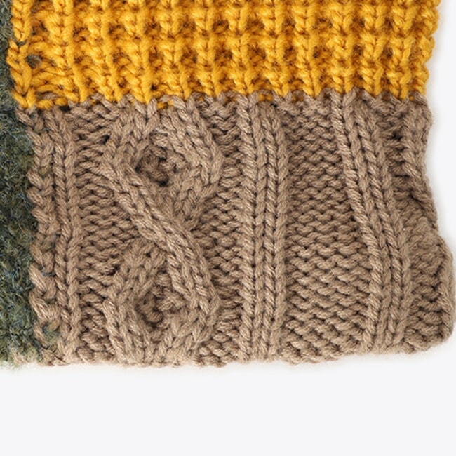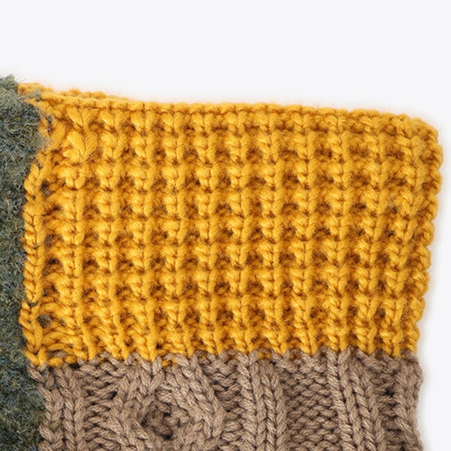 カラーブロックによって編み方を変え、デザイン性を高めました。