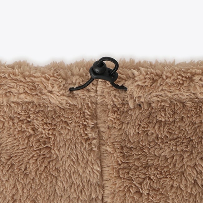 ソフトで暖かな風合いが魅力のファーフリース素材を使用し、心地よい着用感を楽しめるアイテムです。後部にはドローコードを備えており、シーンや体型に合わせて簡単にフィット感を調整できます。