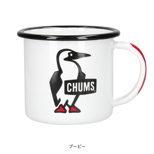 真っ白なエナメルの質感にCHUMSらしいグラフィックが映える琺瑯マグカップ。容量はたっぷりめの約375ml。