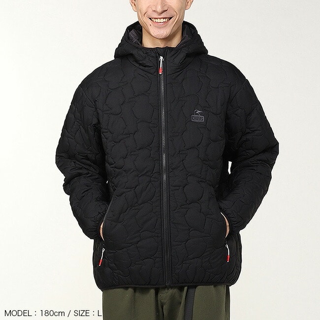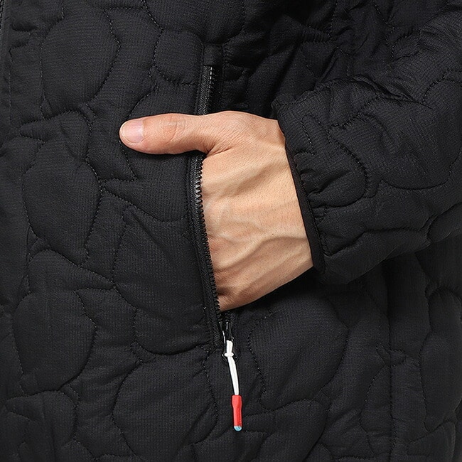 表地には軽量で耐摩耗性に優れたナイロン生地を使用。200Gの中綿をキルティングしており、適度なボリューム感でインナーでもアウターとしても使えるアイテムです。