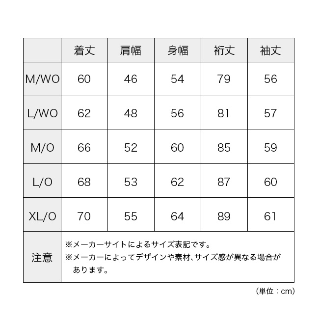 ■サイズ:M/WO,L/WO,M/O,L/O,XL/O