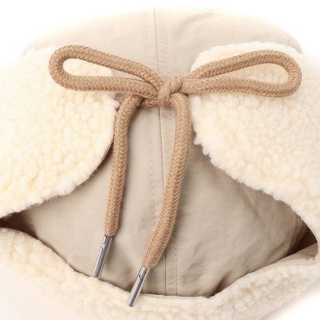表地には耐摩耗性に優れたコットンとナイロンの混紡素材を使用。耳当てとツバ裏には暖かく肌触りの良いボアフリースをあしらい、保温性を高めています。