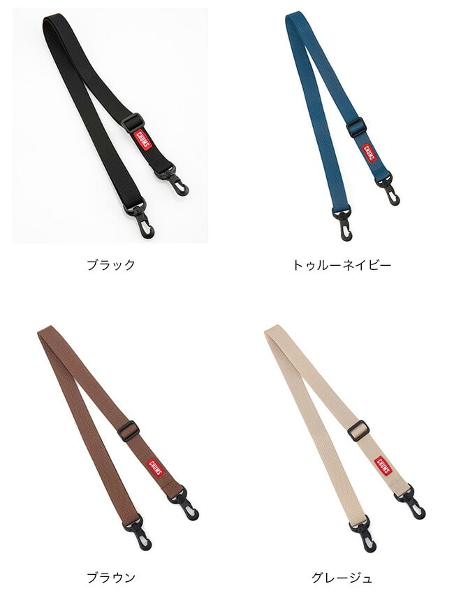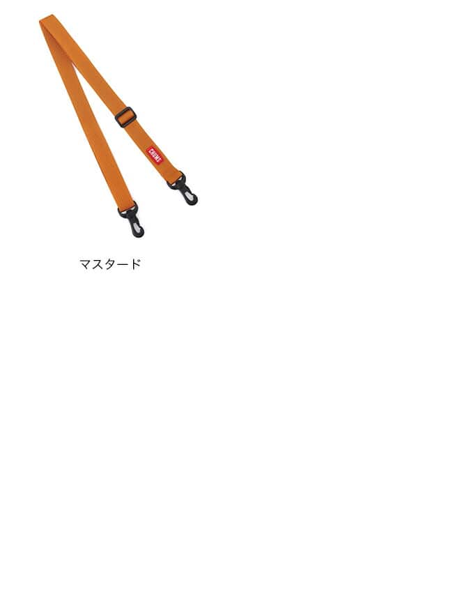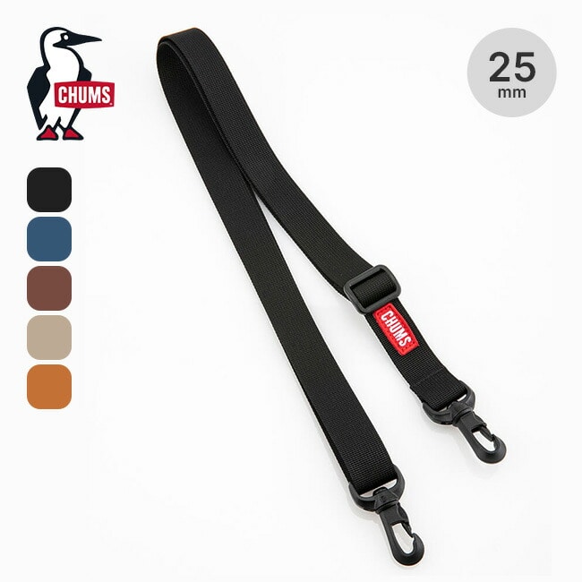 CHUMSのバッグで、ショルダーの取り外しができ、両脇にDカンがついた製品に取付けできるショルダーストラップの25mm幅タイプ。備え付けのショルダーベルトから付け替えてアレンジを楽しめます。