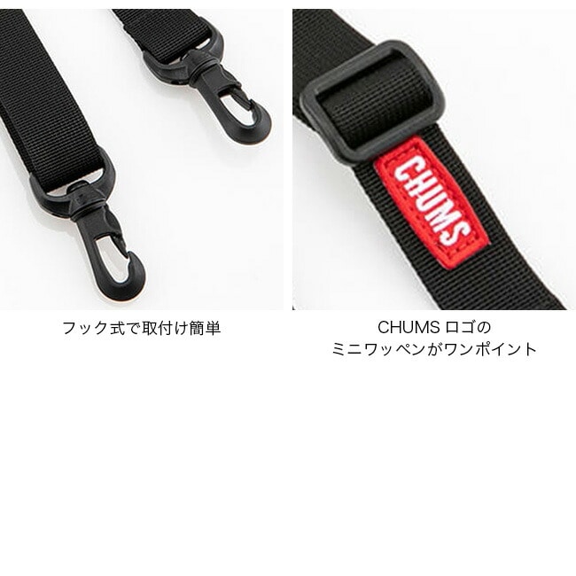 CHUMSロゴのミニワッペンがワンポイントアクセント、付け替え用のショルダーベルト(25mm幅)