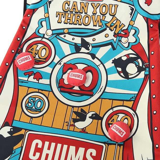 的にボールががくっつく素材で仕上げています。全面に可愛いプリントを施し、大きさの違うポイントが書かれています。