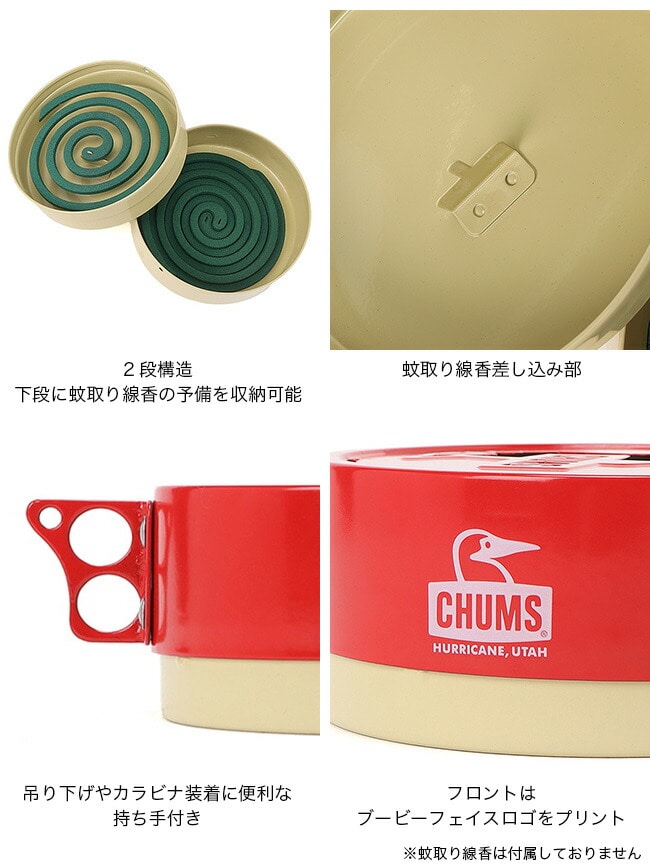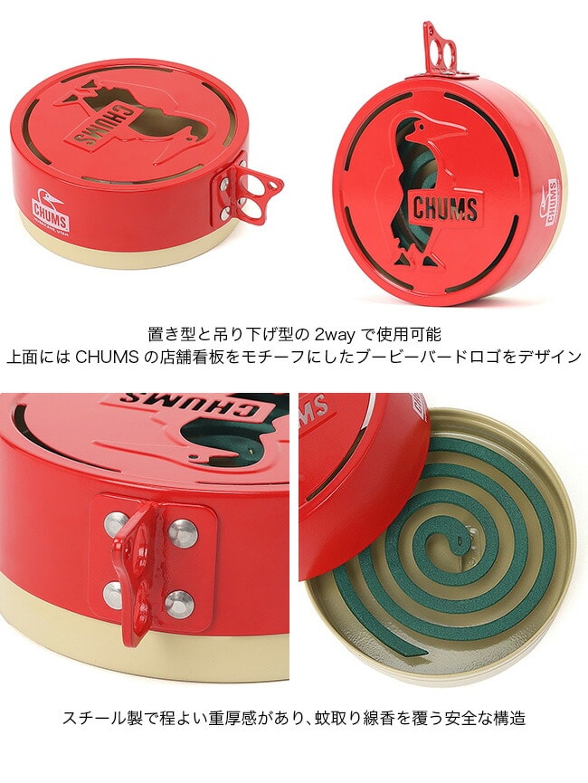 CHUMS定番の“Camper Mug Cup”をモチーフにした蚊取り線香のスタンド。スチール製で程よい重厚感があり、蚊取り線香を覆う安全な構造。