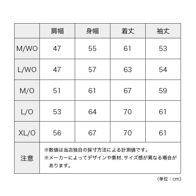 ■サイズ:M/WO,L/WO,M/O,L/O,XL/O