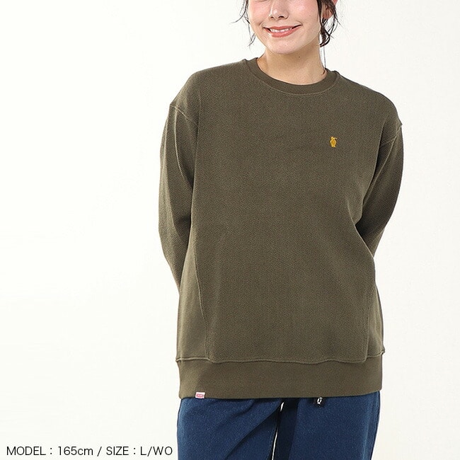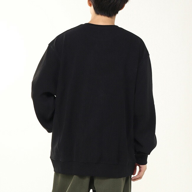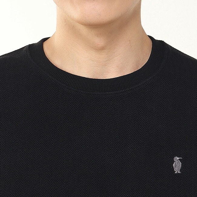 ヘリンボーン柄を取り入れたスウェットクルートップ。ゆったりとしたオーバーサイズシルエットで、リラックス感のある着心地が魅力。
