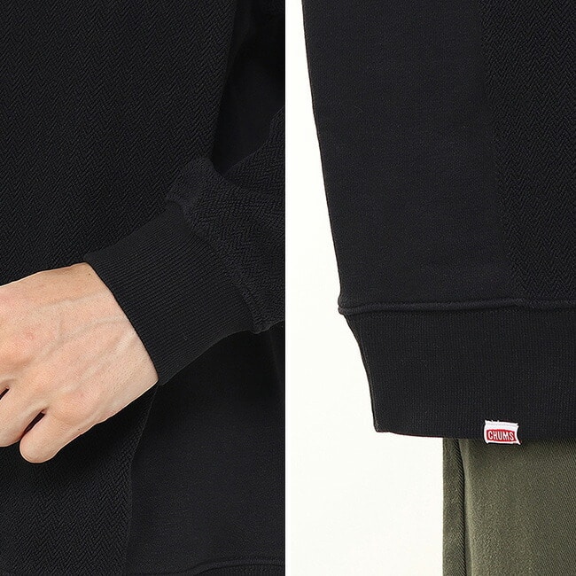 ヘリンボーン柄をCHUMSらしくアレンジした、“Troutbone”シリーズのスウェットクルートップ