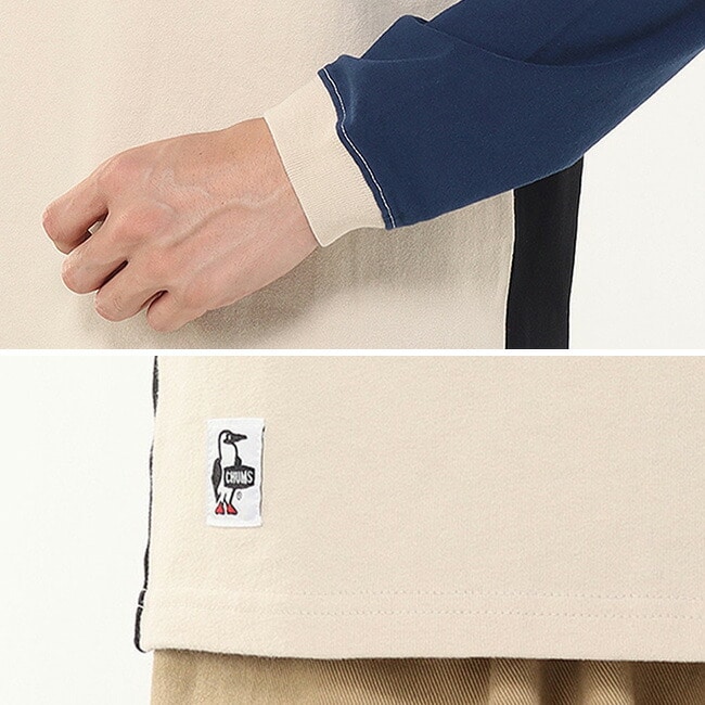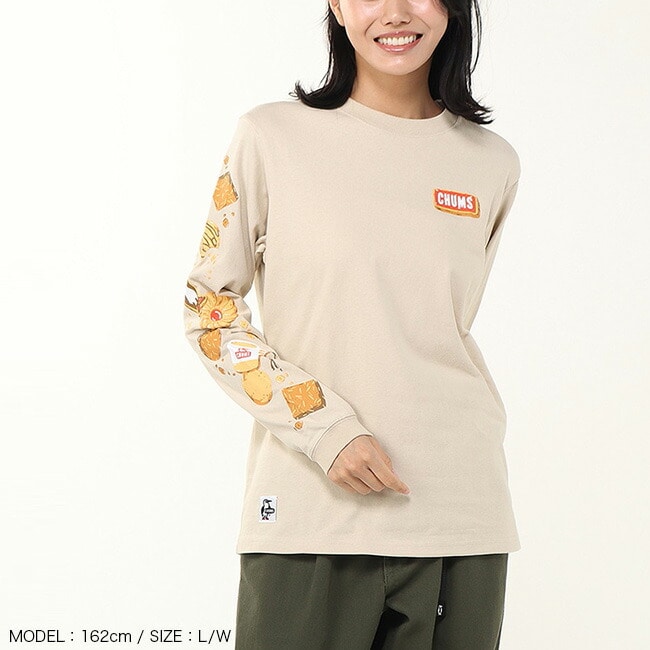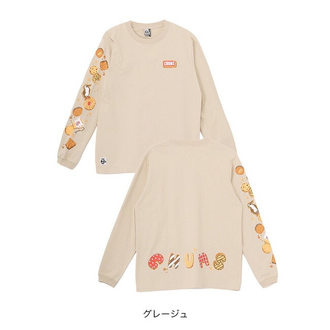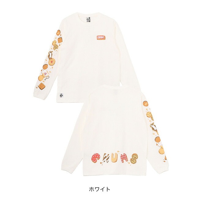 今季のグラフィックの“クッキー柄”を落とし込んだロングスリーブTシャツ。左胸には特殊な加工で立体感を出したボートロゴのアイシングクッキーを、背面下部にはアイシングクッキーで「CHUMS」を表現したグラフィックをプリント。