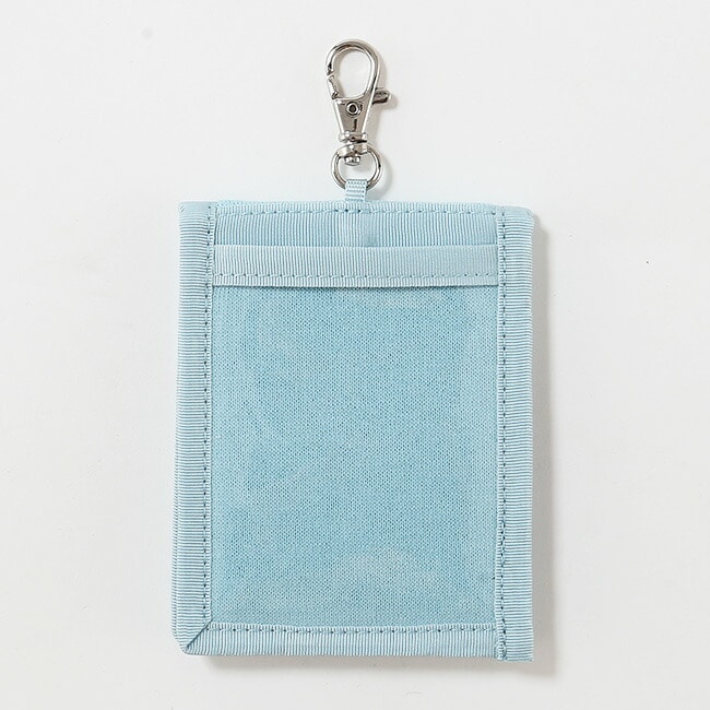 内側にはカードポケットが2つ、外側にはクリアカードポケットが1つあり、フック付きでバッグなどに取り付けて持ち運べます。