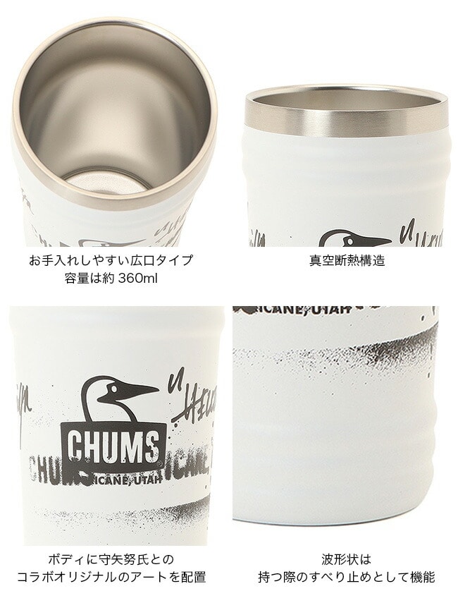 CHUMS定番の「Camper Wave Tumbler」をベースに、ステンシルアーティスト“守矢 努氏”によるアートワークを落とし込んだコラボレーションタンブラー。カラーはWhiteのみの展開とし、同氏のアートが際立つ特別仕様に仕上げました。