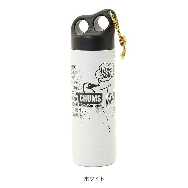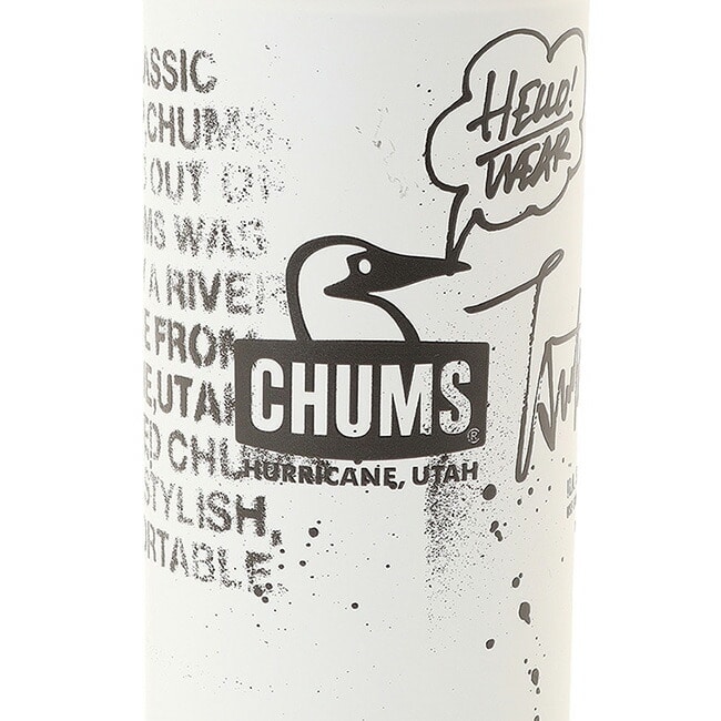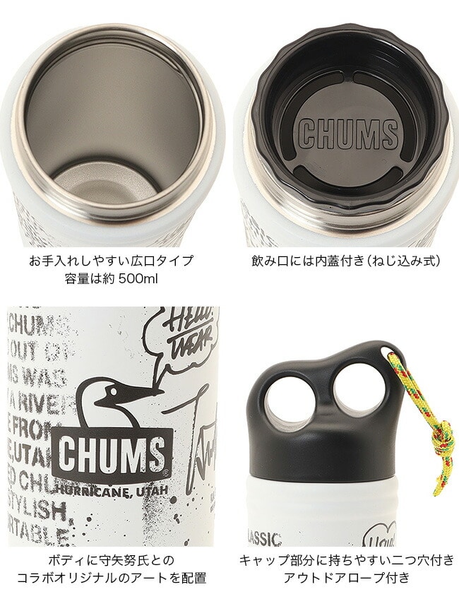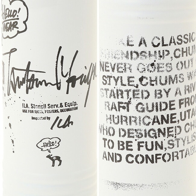 CHUMS定番の「Camper Wave Bottle 500ml」をベースに、ステンシルアーティスト“守矢 努氏”によるアートワークを落とし込んだコラボレーションボトル。カラーはWhiteのみの展開とし、同氏のアートが際立つ特別仕様に仕上げました。