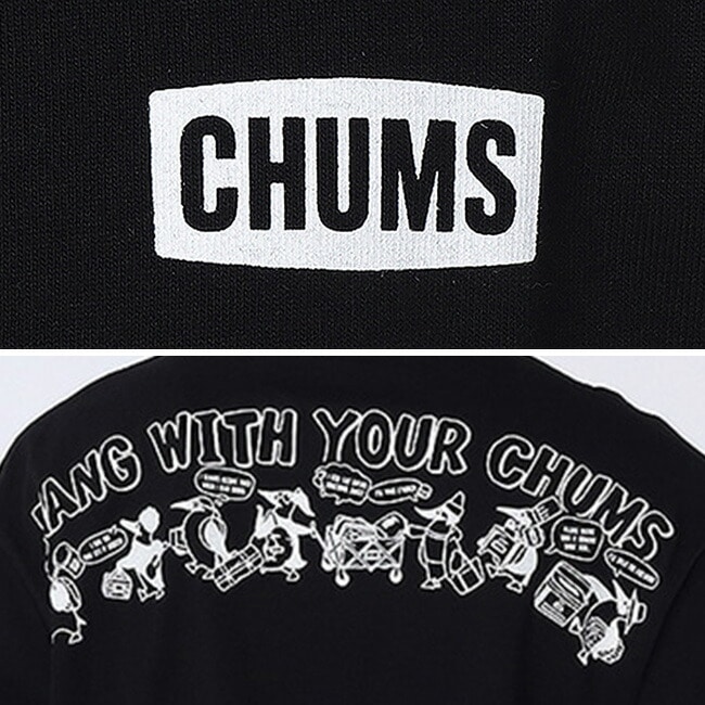 左胸にはCHUMSロゴをワンポイントで配置し、バックには虫取り網や籠を手にしたブービーバードたちが昆虫探しに出かける、楽しげなグラフィックをデザイン。