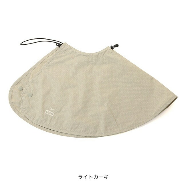 日差しから首元を守るネックガード(日よけ)。正面上部のフックを留めるとキャップに被せて使用でき、さらに背面のコードを絞ってフックを3つのループに留めることで、ハットにも取り付けられる仕様になっています。