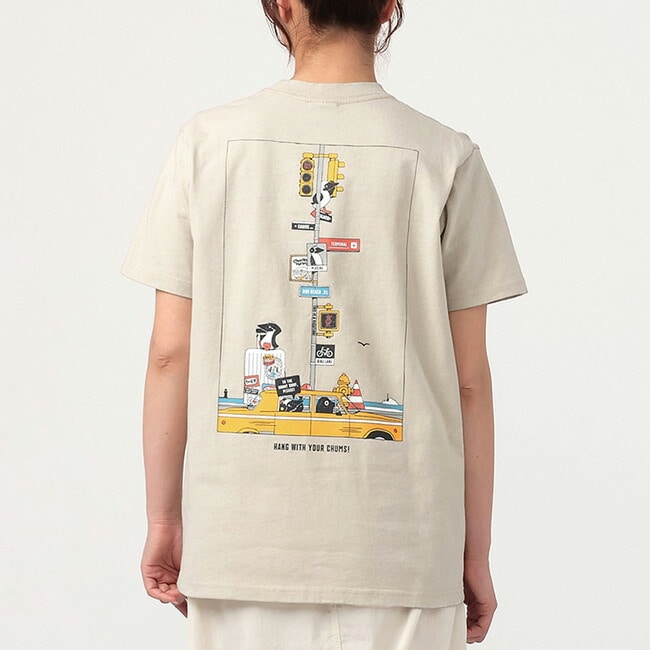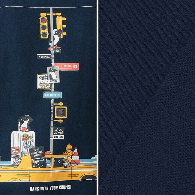 背面には、街の中で迷子になった仲間を探してブービーが奮闘する、CHUMSらしいユーモラスなシーンをプリント。標識や張り紙など、思わず見入ってしまう細かなディテールを随所に散りばめています。