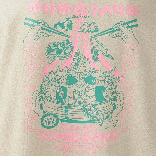 温故知新をテーマに、おとぎ話「桃太郎」をCHUMSの世界観で大胆にリミックスしたグラフィックTシャツ。キャラ弁カルチャーと、日本人なら誰もが親しみを持つ昔話を掛け合わせた、あそびゴコロあふれる一枚。
