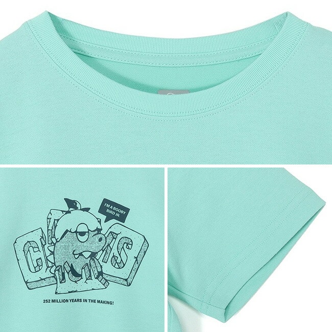 「温故知新」をテーマに、カツオドリの“遠い親戚”ともいわれる恐竜とコラボレーションしたグラフィックTシャツ。フロントには、岩石風にアレンジしたCHUMSロゴと恐竜の姿をデザインし、「252 MILLION YEARS IN THE MAKING!(2億5200万年の時を経て誕生!)」というメッセージを添えました。