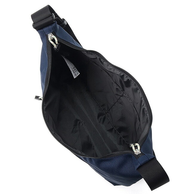 A4サイズが収納でき、長財布や500mlボトルなど必需品をすっきり持ち運べる、使い勝手の良いサイズ感です。開口部はファスナー仕様で中身が見えにくく、前面には出し入れしやすいファスナーポケット、内側には小物整理に便利なポケットを2つ備えています。