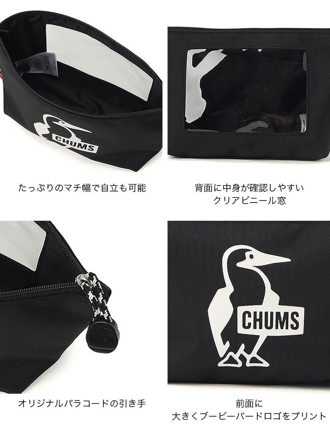 前面はブービーバードロゴ、後面はクリアビニール窓仕様の小物ポーチ