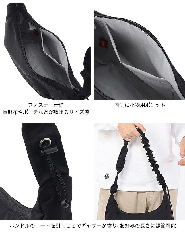 ストラップはコードを引くことでギャザーが寄り、好みの長さに調節可能。