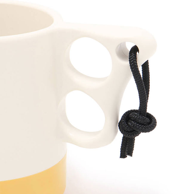 安定性抜群の2つ穴の持ち手が特徴的。スタッキングや吊り下げが可能で、キャンプや登山などアウトドアで大活躍。