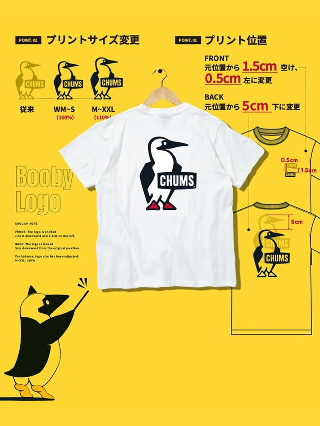 CHUMS定番のバックプリントTシャツ。従来品からサイズパターンを見直し、従来品からサイズパターンを見直し、より着やすく、バランスの取れたシルエットへとアップデートしました。