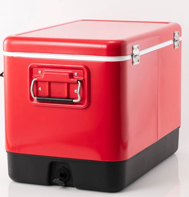 キャンプの必需品、頑丈で耐久性に優れたハードクーラーボックス。全面にウレタンフォームが注入されており、安心の保冷力。