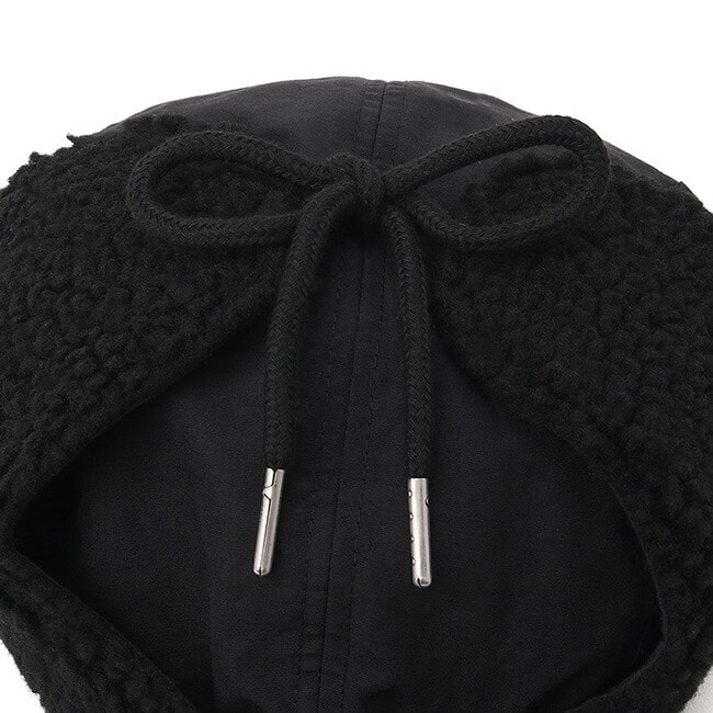 表地には耐摩耗性に優れたコットンとナイロンの混紡素材を使用。耳当てとツバ裏には暖かく肌触りの良いボアフリースをあしらい、保温性を高めています。