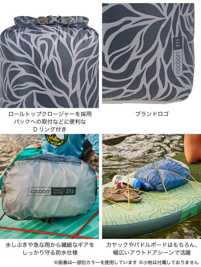ロールトップクロージャーを採用した防水仕様のコクーンドライバッグは、ウォータースポーツでの使用に最適なアイテムです。水しぶきや急な雨から繊細なギアをしっかり守り、バックパック内でも荷物をドライに整理整頓できます。