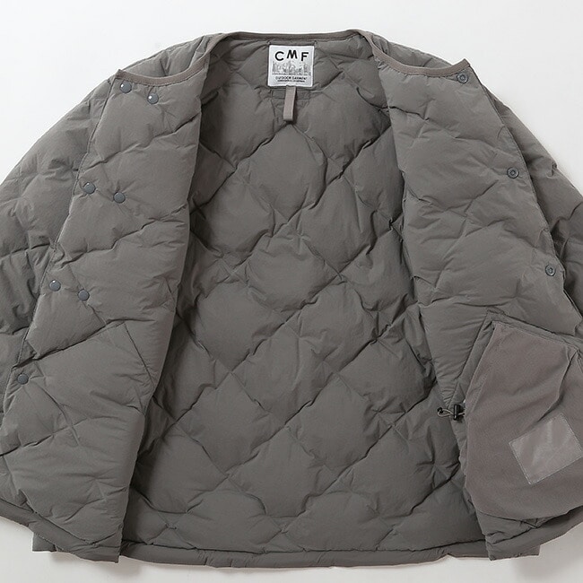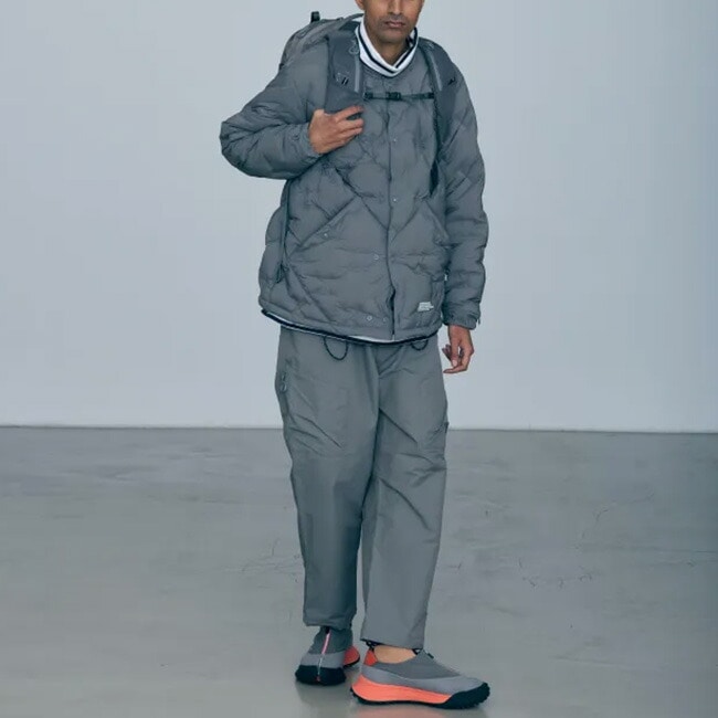 A CMF INNER DOWN released every season.This season features a new technique called CMF WOVEN,where the outer and inner fabrics are woven in an X-pattern,and down (DOWN 90 FEATHER 10 700FP) is inserted without the need for down packs.Unlike traditional pressed-down jackets,which deteriorate over time and accumulate down in certain areas,this technique holds the down in place with weaving, preventing such issues.