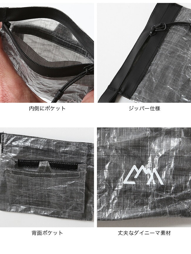 軽量かつ高強度なダイニーマ素材を採用し、ミニマルながらも高い耐久性を実現。