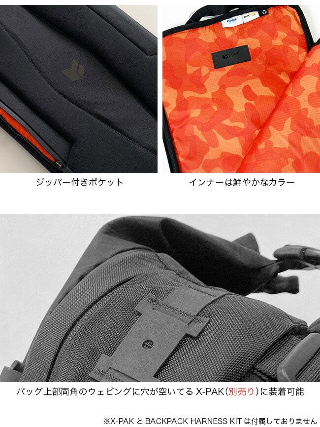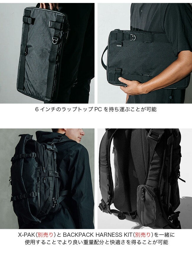 また、別売りのBACKPACK HARNESSを一緒に使うことで、大きなノートパソコンを持ち運ぶ重量感を分散して快適に荷物を持ち運べます。