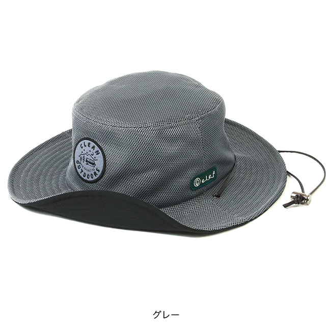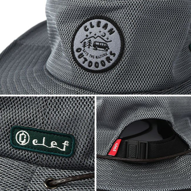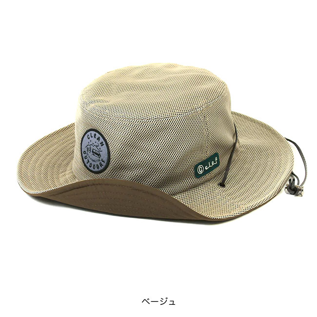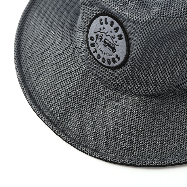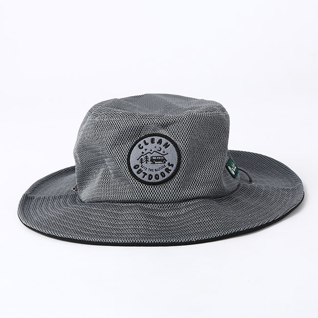 フロントには自然の中を走る車が印象的な「CLEAN OUTDOORS」のワッペン付き。夏の日差しをさえぎる大き目のツバと、ハット全体を透け感が少なく風通しの良いメッシュでデザインされています。