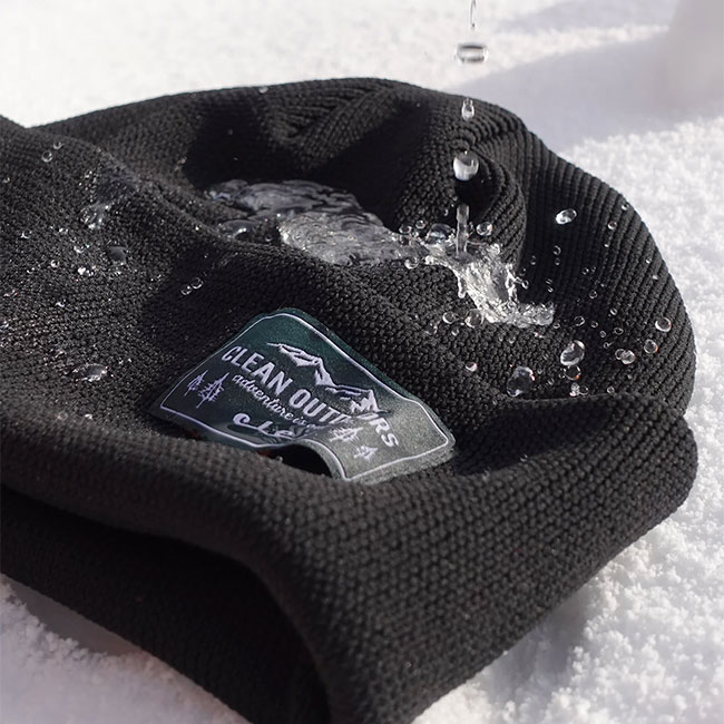 ニット1本1本にはっ水加工を施しているため、通常のはっ水ニットに比べて驚くようなはっ水効果を発揮します。スキーやスノーボードをはじめキャンプや釣りなど、雪の中でもアウトドアを楽しむ方に。