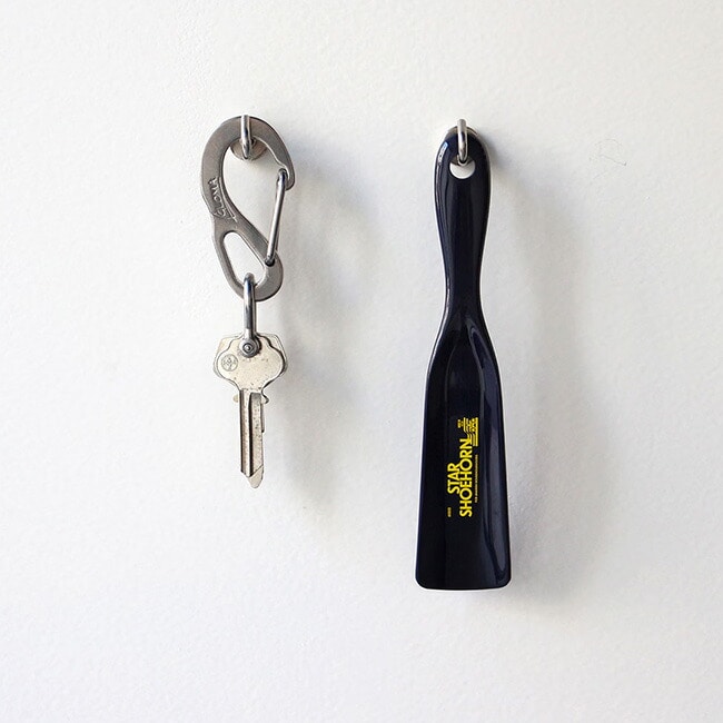 靴べらというモチーフにおいて、木材や金属などさまざまな素材が使われているものの、デザインで差別化されたものは実は少ないアイテム。生産は、80年間にわたってmade in USAを守り続け、様々な企業のアドバタイジング(広告)用のシューホーンを提供しているカリフォルニアの老舗メーカーの別注タイプです。