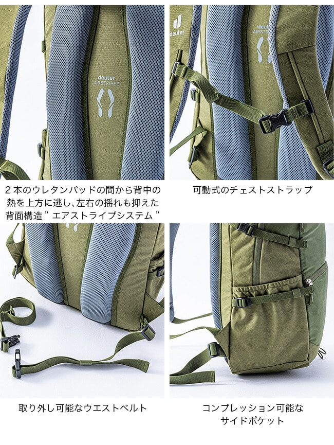 取り外し可能なウェストベルトや、ポール取付可能なバンジーループがついており、シーンによって使い分ける事ができます。