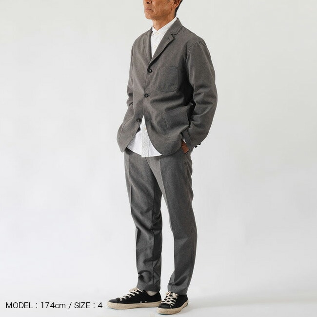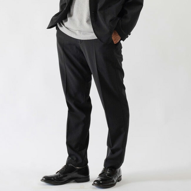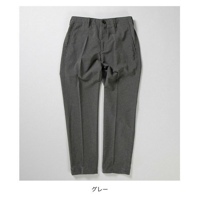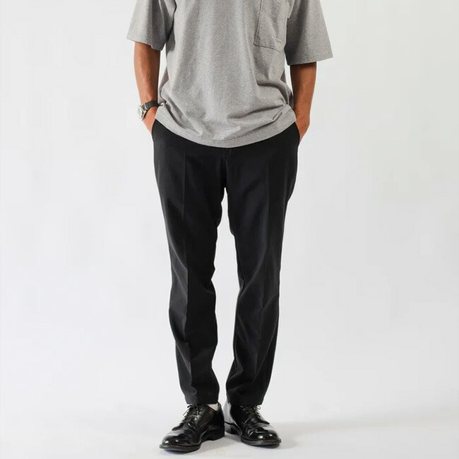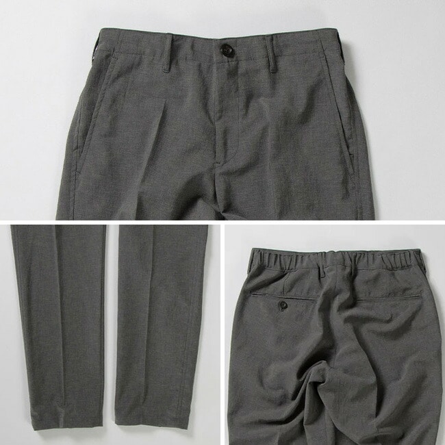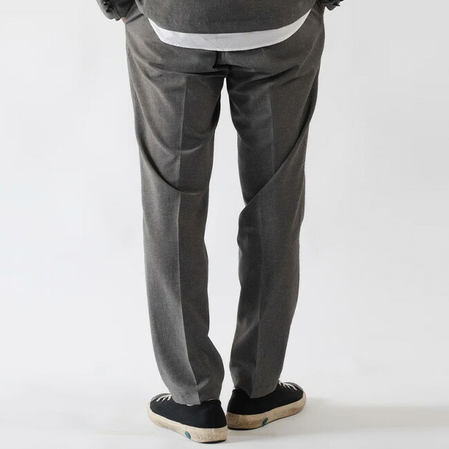 薄く軽い素材ながらオケージョンとしての利用も可能な風合いでマルチなセットアップのパンツです。