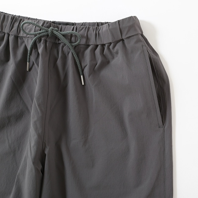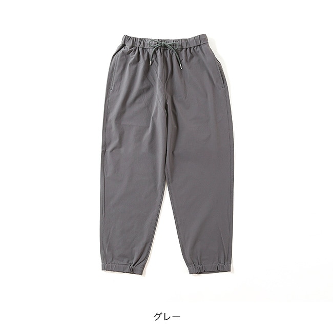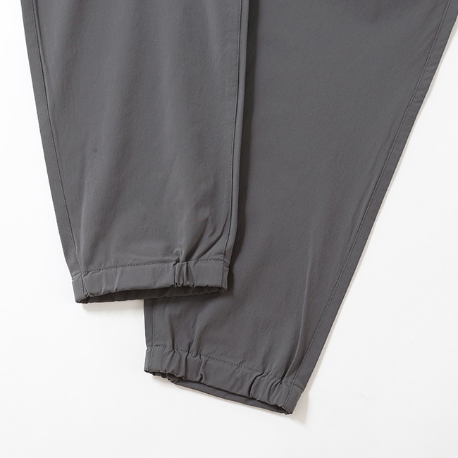全体に程よいゆとりがありながら裾にかけてテーパードさせ、更にゆるくゴム仕様でアクセントをプラス。