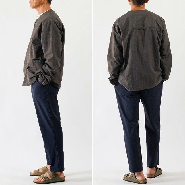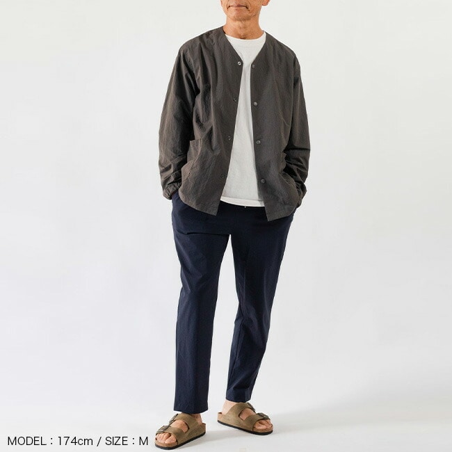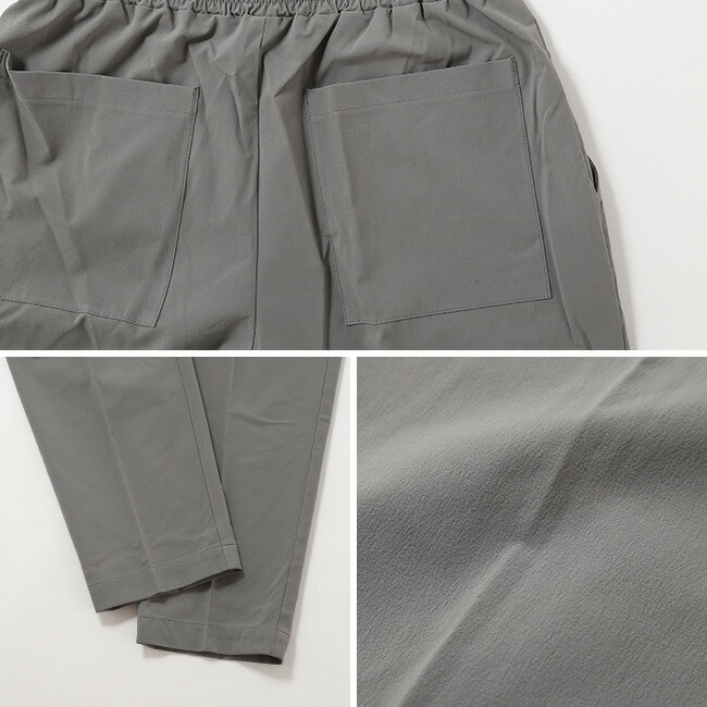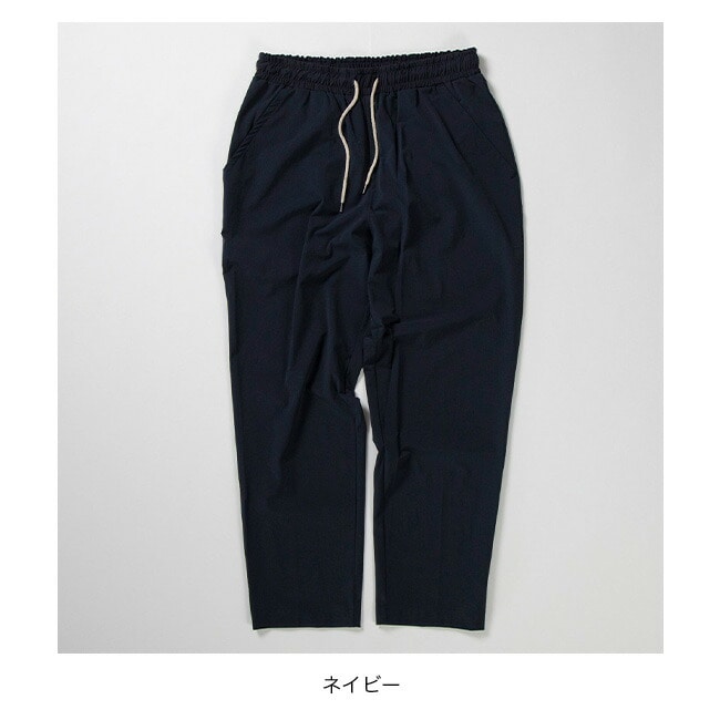 軽さとしなやかさに加え、4WAY(縦横斜め全方向)に伸縮する着心地を最優先に考えられた素材を使用。イージーパンツでありながら脚全体をキレイに見せてくれるテーパードシルエット、 シンプルなディティールとキレイ目な表情でコーディネートの幅が広く、お仕事からお休みまで、デイリーに使えるパンツに仕上げています。