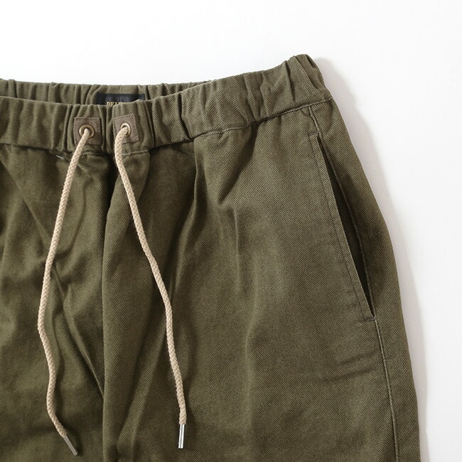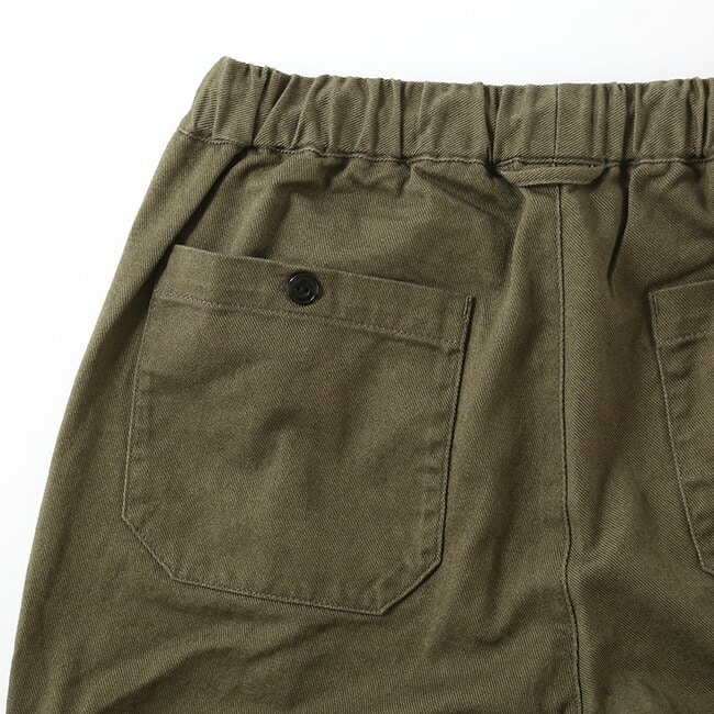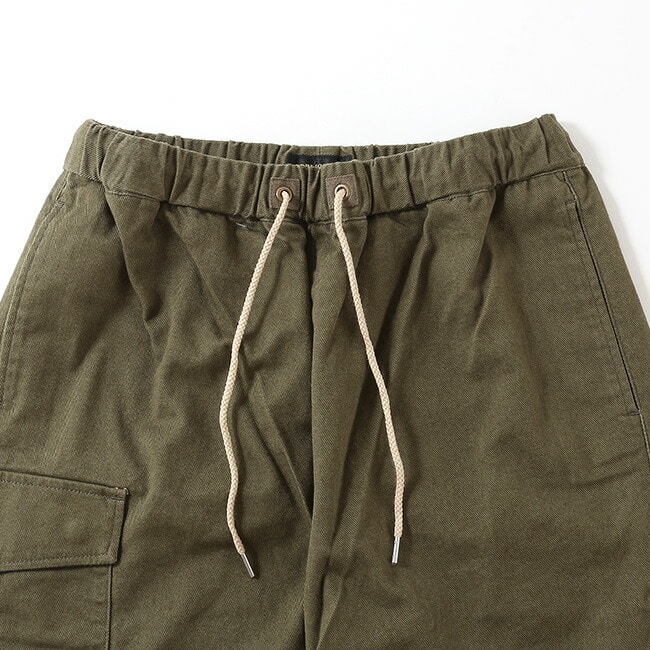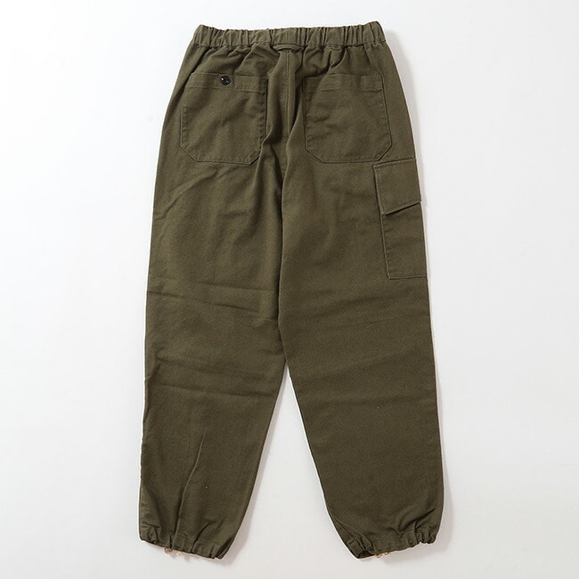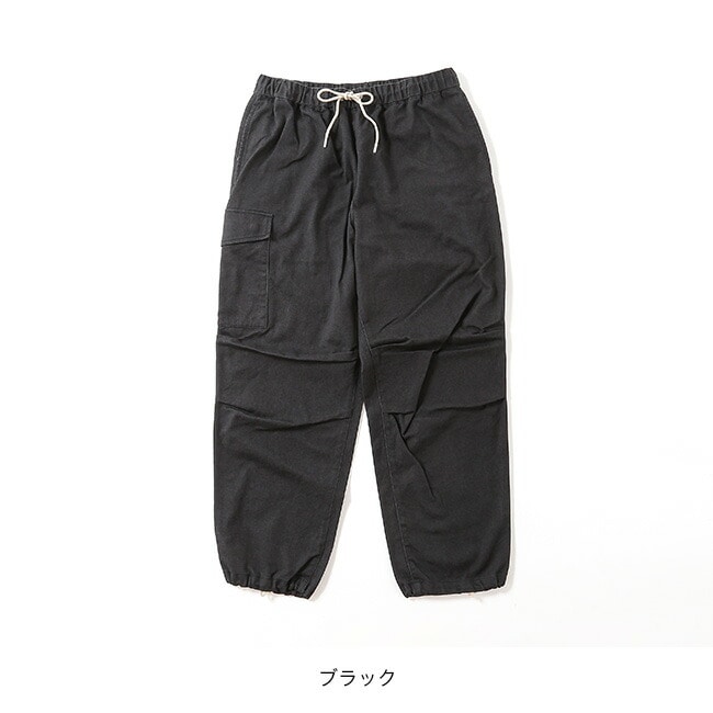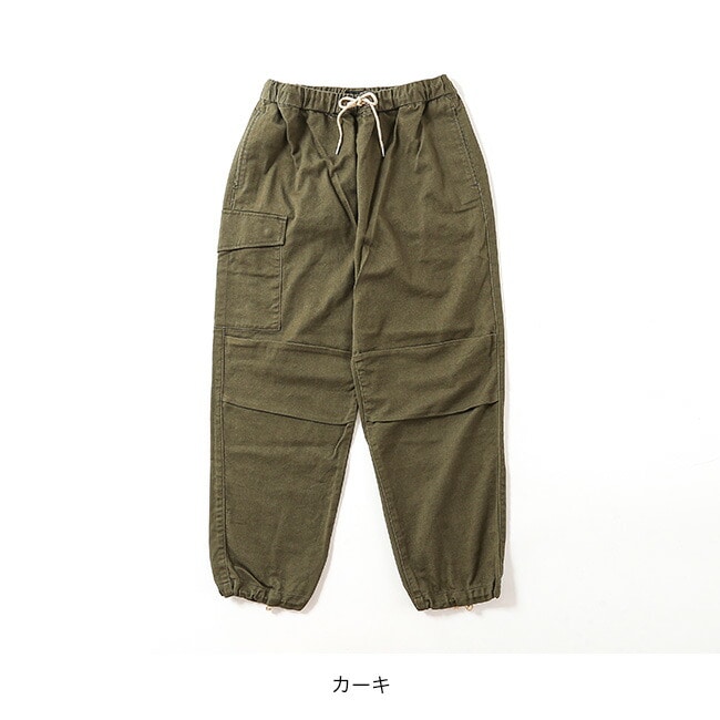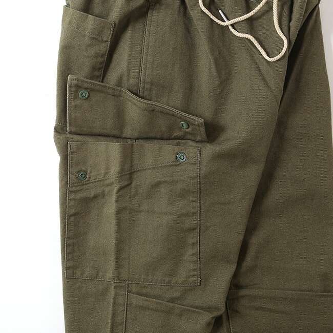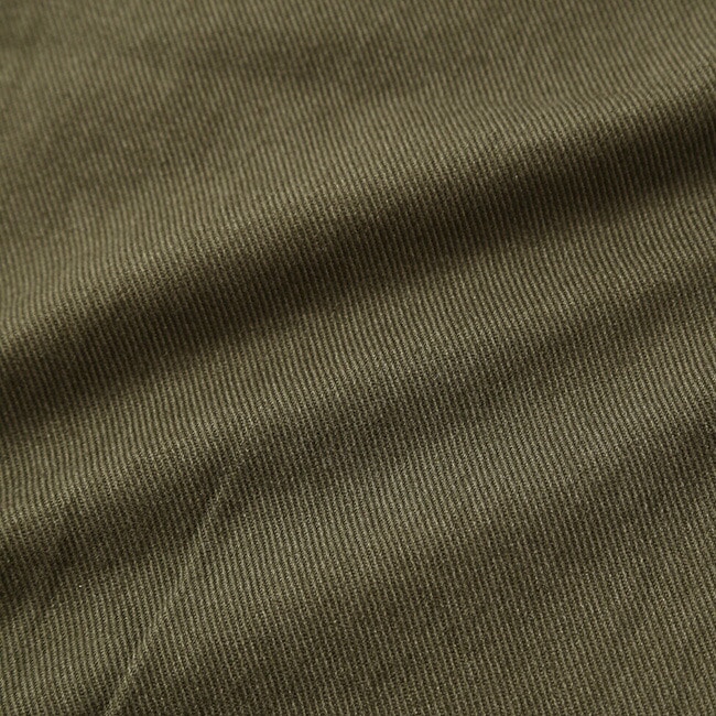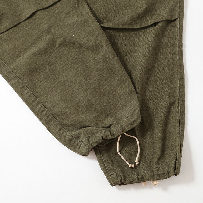 色合いも含め自然で表情のある見え方が特徴。ミリタリーテイストながら程よいワイドシルエットとシンプルなディティールで品の良いコーディネートが可能なパンツ。