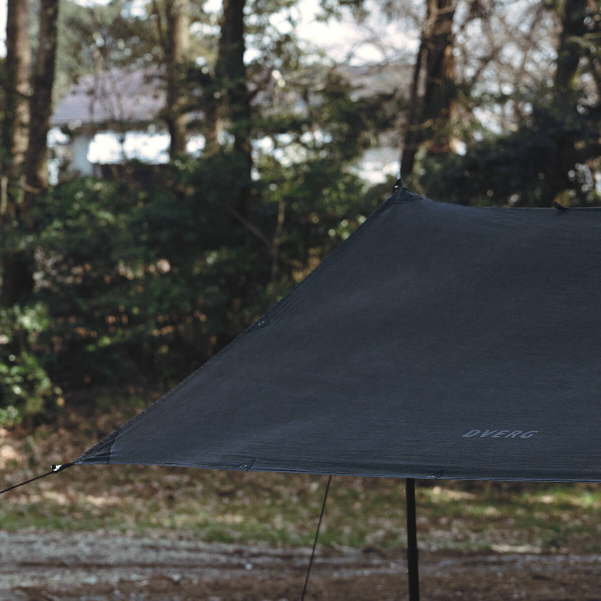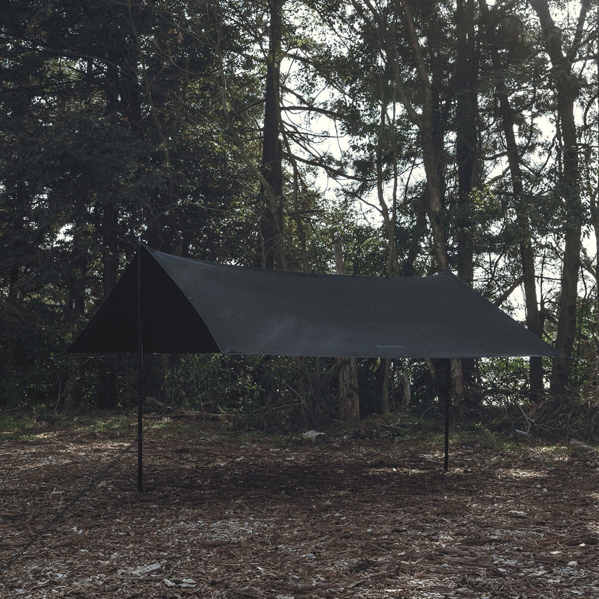 形状は汎用性の高いスクウェアタープで、テープループ10ヵ所、グロメット9ヵ所の計19ヵ所を備え、多彩な張り方が可能です。
