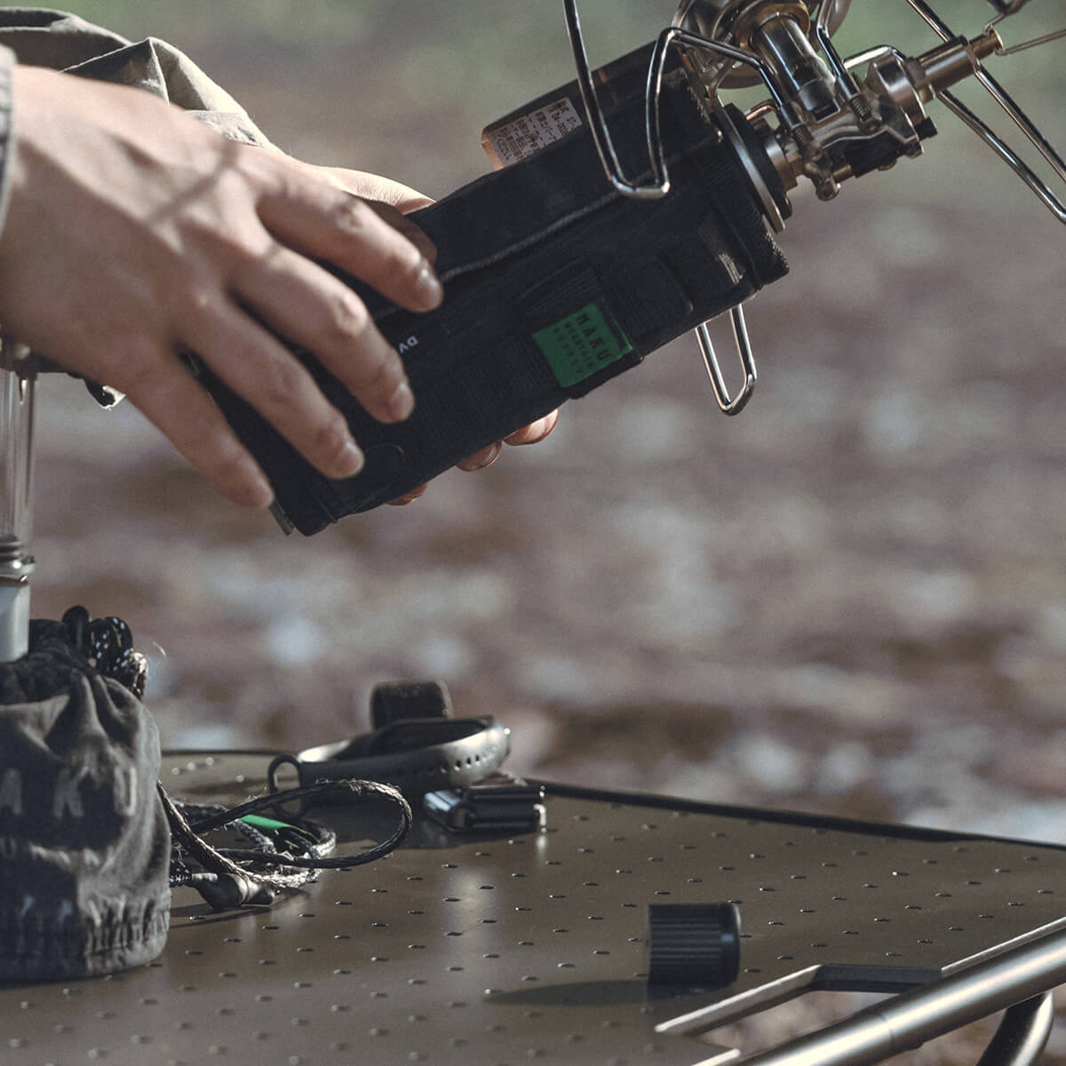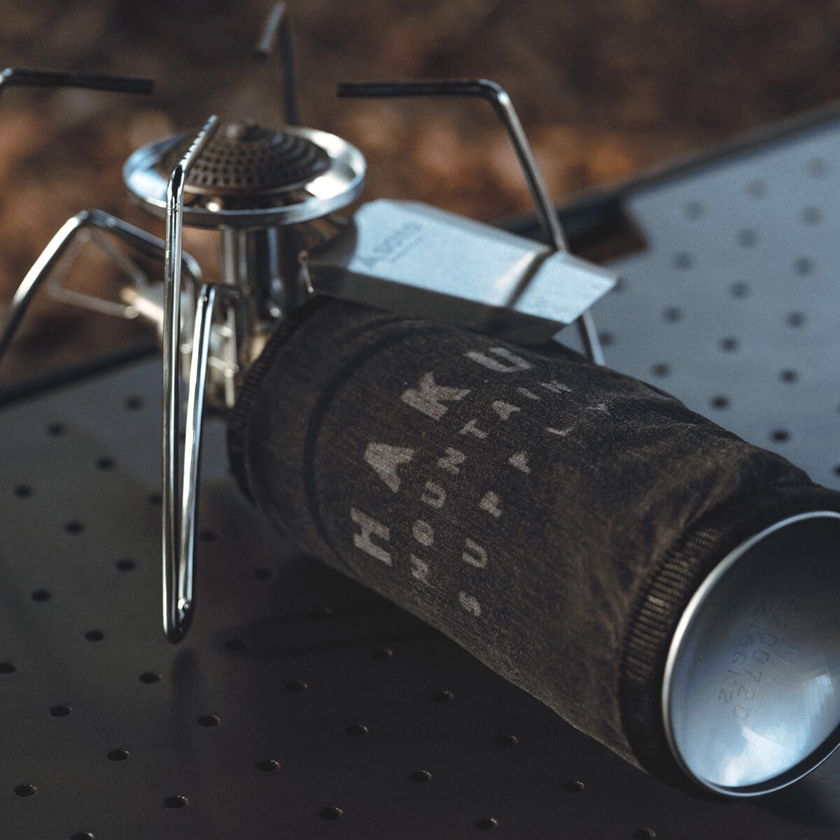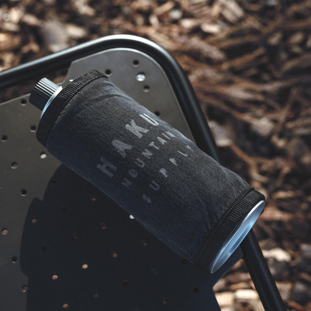 ガス缶に巻くことでフィールドに馴染む落ち着いた雰囲気を演出するガス缶カバー。