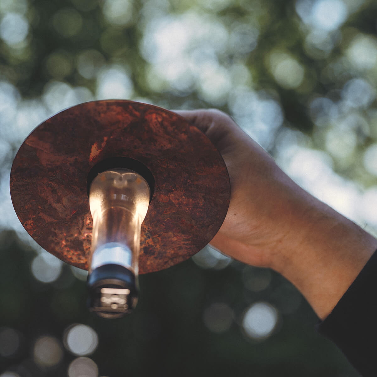 銅の腐食性を利用し伝統技法で薬品や炎をコントロールすることで、機械では表現できない独特な色彩を発色させている。