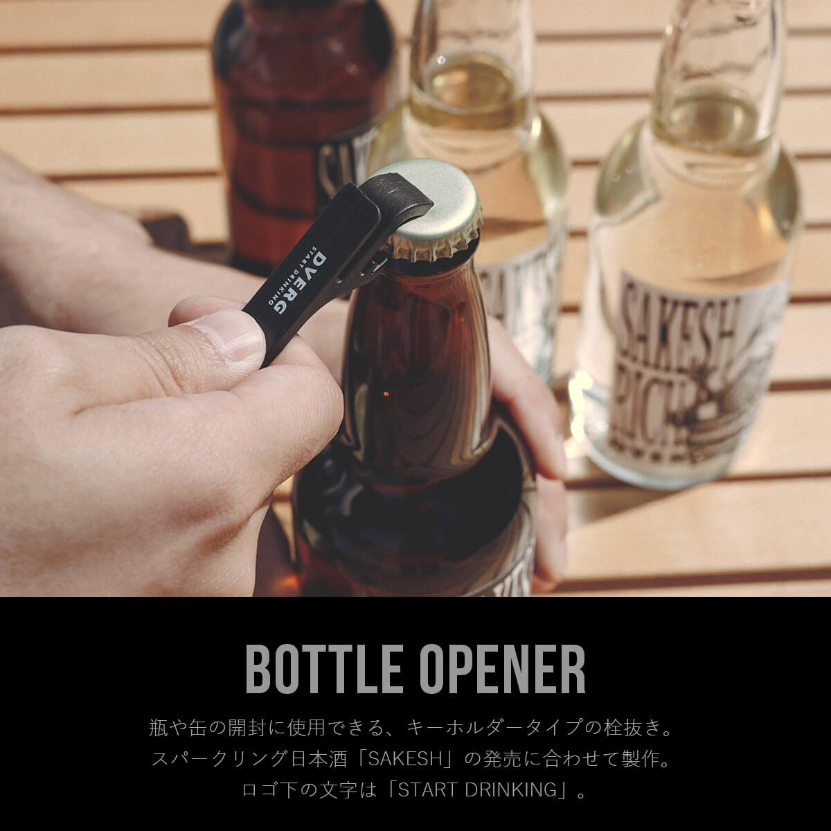 スパークリング日本酒「SAKESH」の発売に合わせて製作。ロゴ下の文字は「START DRINKING」。