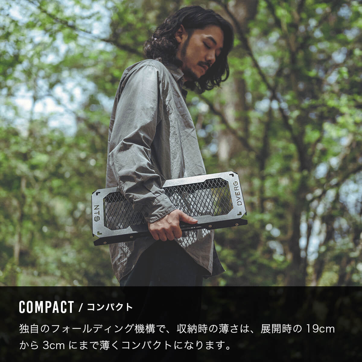 独自のフォールディング機構で、収納時はコンパクトで持ち運びに便利です。