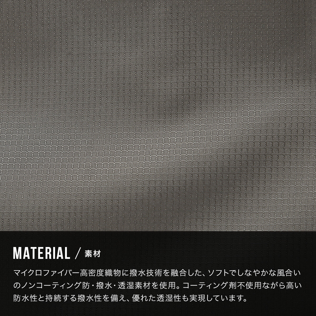 コーティング剤不使用ながら高い防水性と持続する撥水性を備え、優れた透湿性も実現しています。