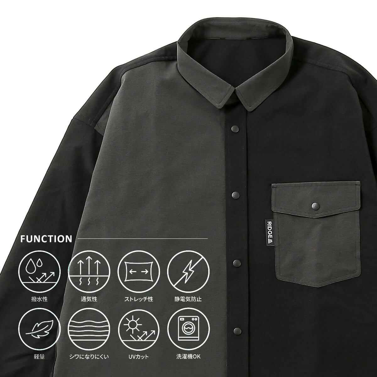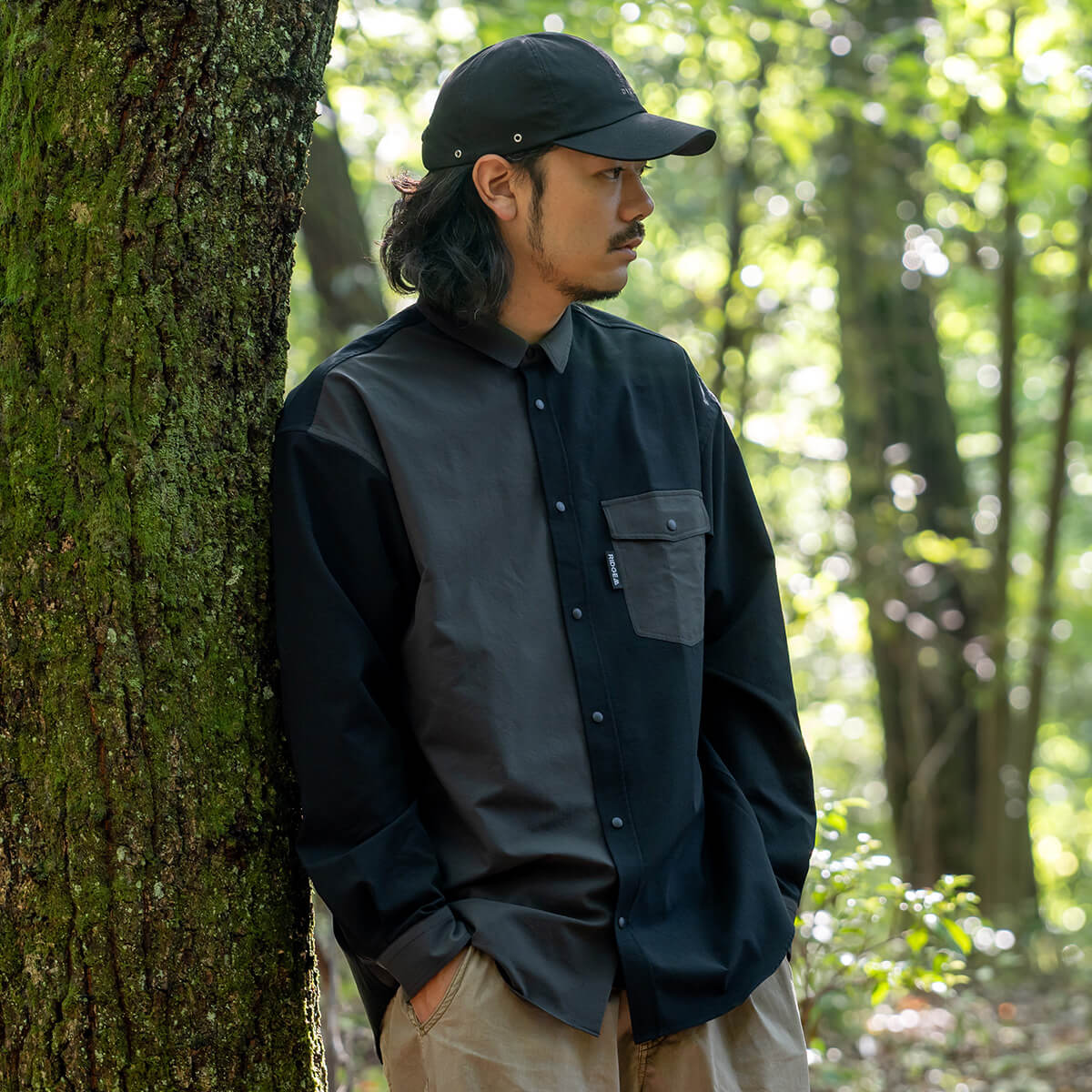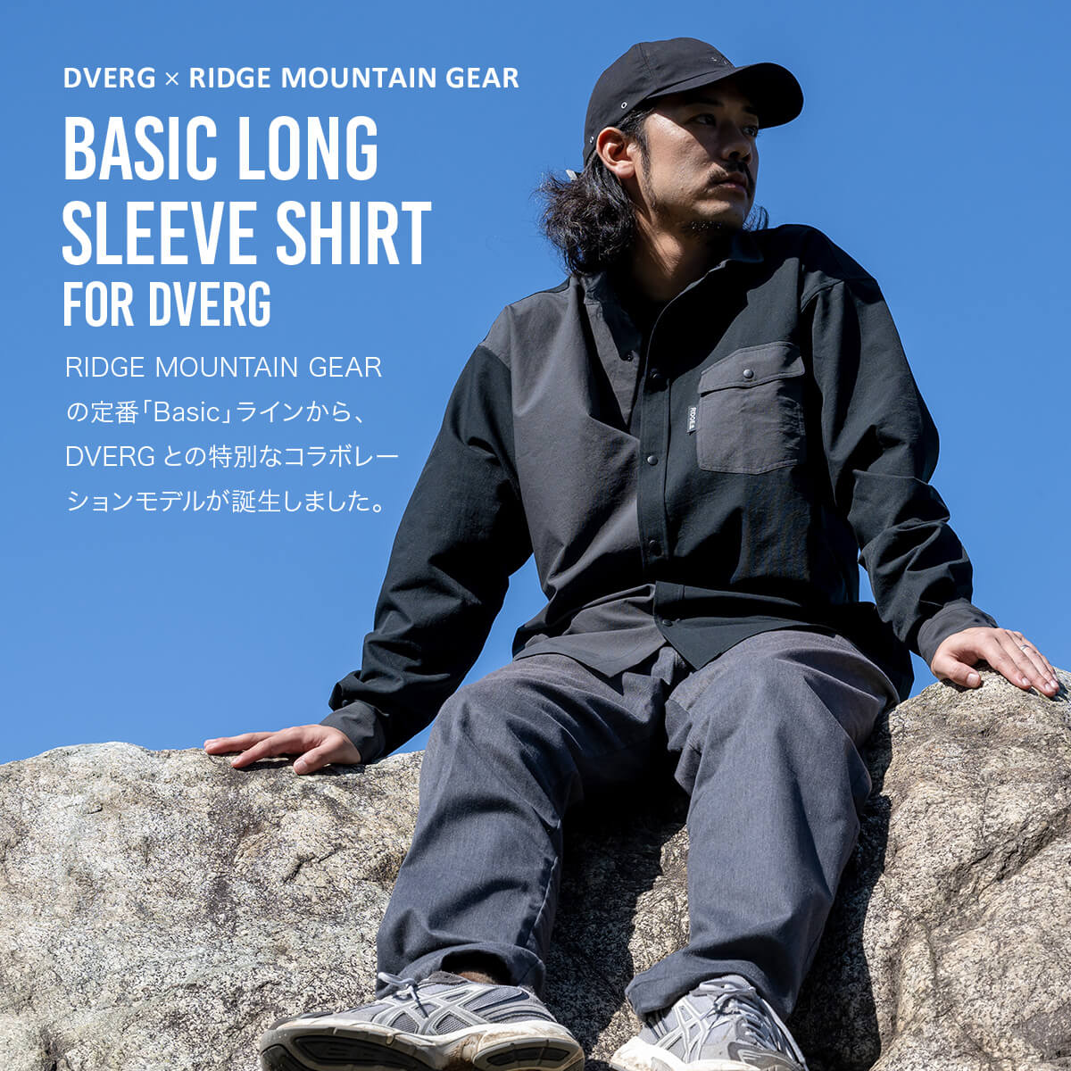 RIDGE MOUNTAIN GEARの定番「Basic」ラインから、DVERGとの特別なコラボレーションモデルが誕生しました。シンプルでありながら、こだわり抜いた着心地と、フィールドでも快適に過ごせる機能性はそのままに、遊び心を効かせた大人のバイカラーシャツにアップデート。