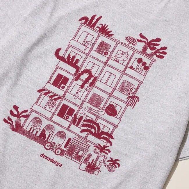 2025年のコレクションアイコンでもある、アーバングラフィックタグを左裾にパッチワーク。