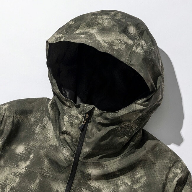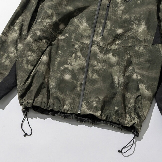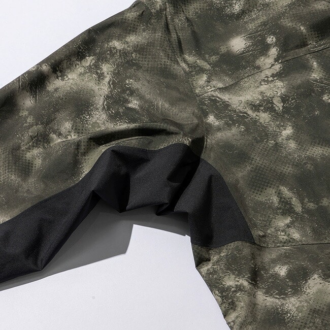 裏地にメッシュを配した二重構造は肌離れがよく、雨の日や肌寒い日にも快適さを維持する。胸ポケットには止水ファスナーを搭載し、収納物の濡れに対応。